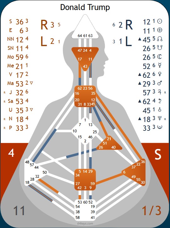 Im Donald Trump Human Design Chart gibt es einige Schlüsselkanäle, die seine Persönlichkeit prägen und seine politischen Fähigkeiten stärken: